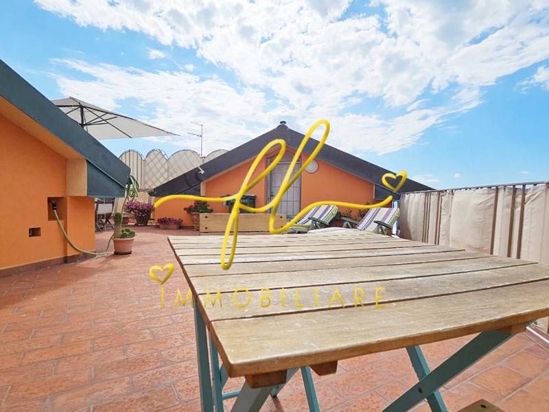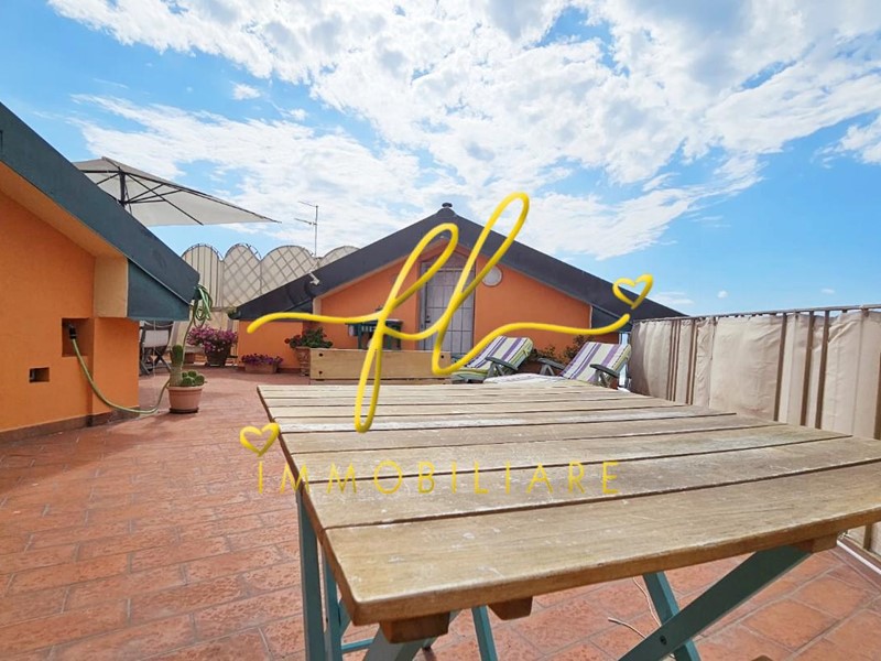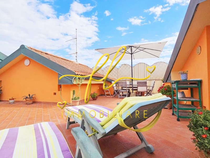 L' appartamento copre una superficie di 70 mq ed è composto da cucina- soggiorno con piccolo balcone vista mare, camera matrimoniale e bagno; salendo da un vano scala accediamo alla mansarda composta da un ampio vano ad uso camera da letto per ospiti, piccolo bagno e accesso diretto alla fantastica terrazza di 45 mq dove poter fare le nostre colazioni davanti al suggestivo rumore delle onde e all'odore del nostro mare accomodandosi sulle sdraio prendisole.