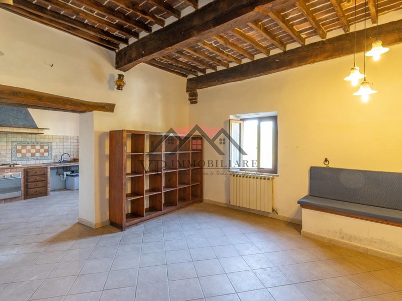 L’appartamento si sviluppa su due piani, con accesso indipendente e collegati internamente da scala in muratura. Il piano terra rialzato con ingresso dal borgo è destinato alla zona giorno con ampia cucina, ampio soggiorno, bagno e vano scala che permette l’accesso al piano sovrastante.