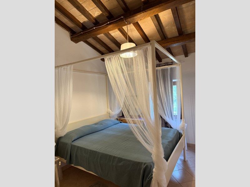 Al piano primo troviamo un'altra camera da letto matrimoniale con pompa di calore caldo/freddo, bagno con scaldabagno nuovo e un piacevole balconcino con affaccio sul verde circostante.