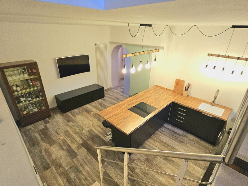 Le due unità dispongono di un collegamento interno tramite elegante scala che mette in comunicazione le sovrastanti cucine.