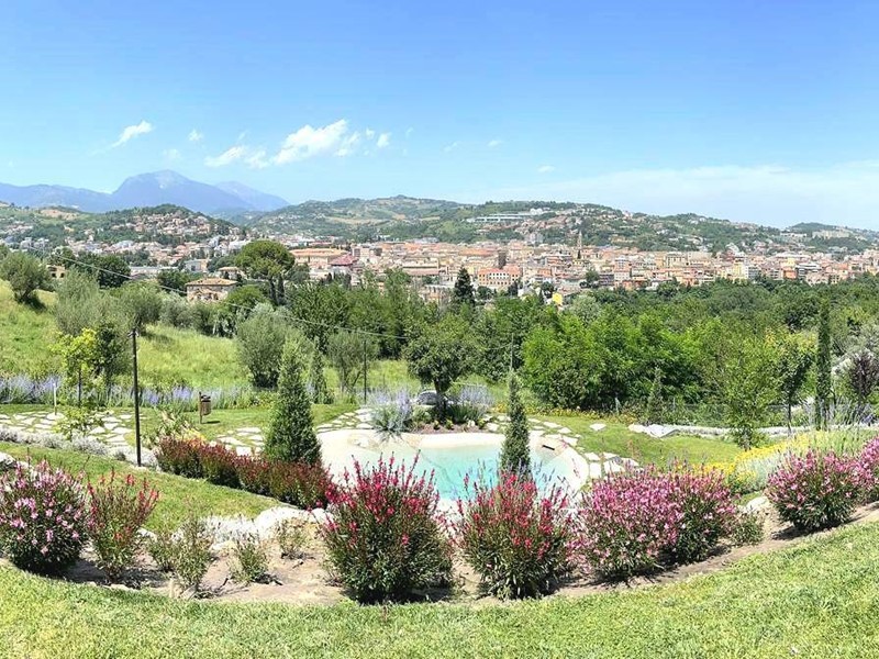 IN VENDITA VILLA BIFAMILIARE PANORAMICA con PISCINA suddivisa in DUE APPARTAMENTI, INTEGRALMENTE RISTRUTTURATA ad 1 Km dal CENTRO di TERAMO con Mq 7.000 di TERRENO di 4.500 recintati a giardino.