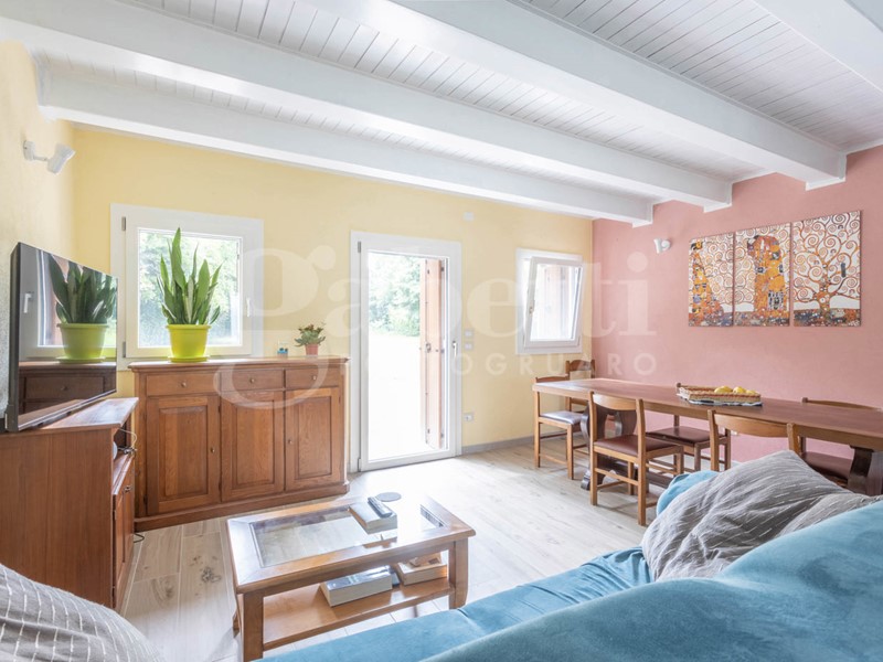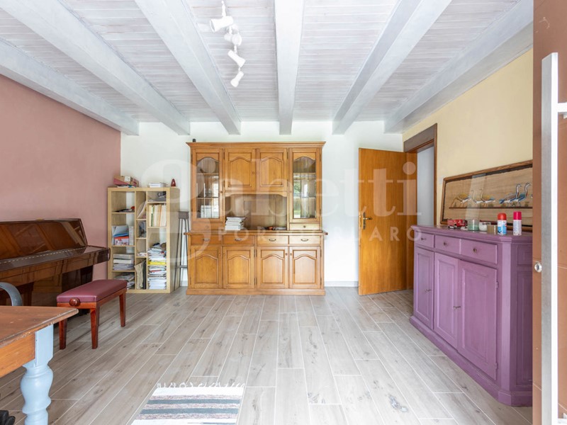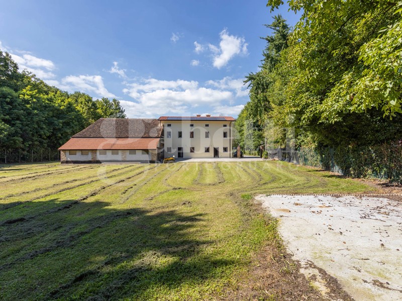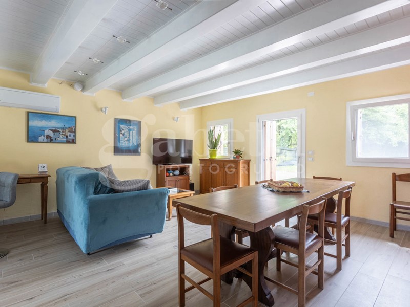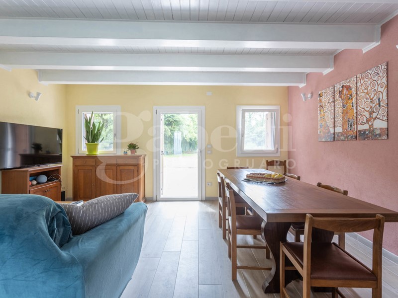 Il cuore della proprietà è il blocco abitativo principale, COMPLETAMENTE RISTRUTTURATO nel 2023, sviluppato su due livelli per complessivi 160mq ed inserito in un contesto verde di circa 2.000 mq. Al piano terra si apre una zona giorno accogliente, con ingresso su sala funzionale, collegata alla sala da pranzo con angolo cottura. Le numerose vetrate su più lati regalano una splendida luminosità e un costante dialogo con l'esterno, affacciandosi sul grande giardino retrostante e sul fronte verde della casa. Sempre al piano terra, un ampio bagno finestrato con box doccia completa la zona giorno e può fungere da pratica lavanderia.