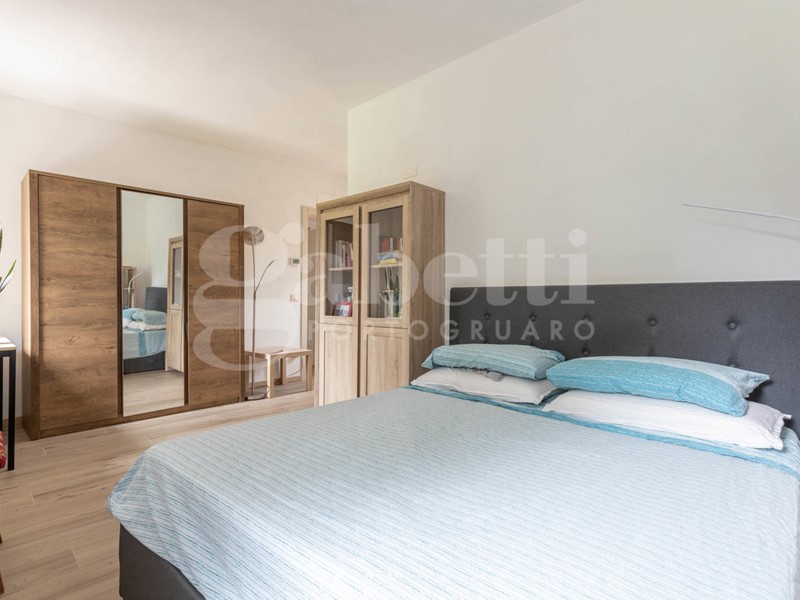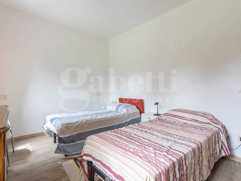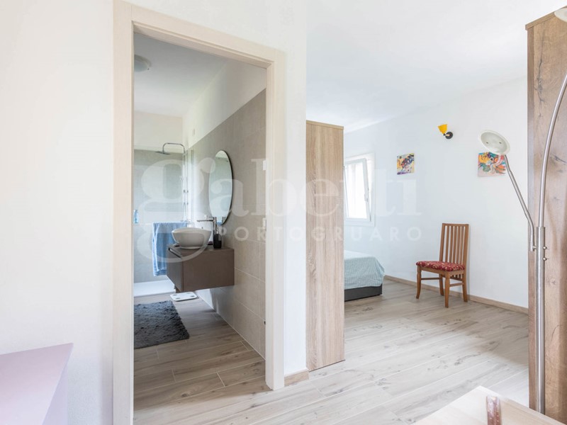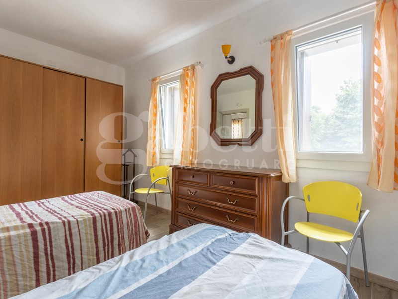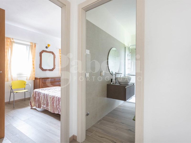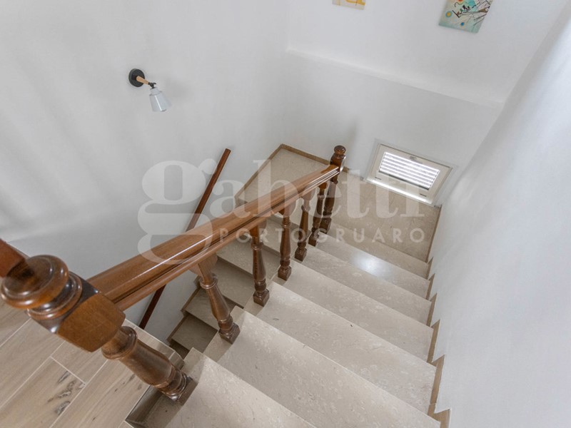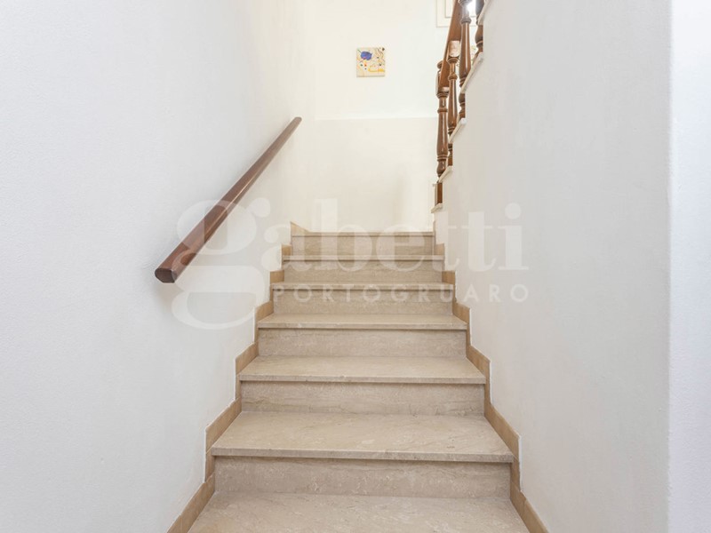 La scala, corpo centrale dell'abitazione, conduce alla zona notte al piano superiore, composta da due camere da letto, di cui una matrimoniale, entrambe dotate di bagno privato moderno con box doccia.