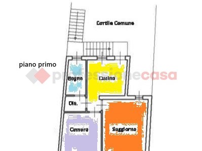 L'appartamento è posto al piano primo ed ultimo di un terratetto a cui si accede da scala esterna (senza ascensore). Disposto su unico livello: ingresso nella zona cucina, soggiorno (utilizzabile all'esigenza come seconda camera), disimpegno, camera e servizio. Doppia esposizione. Termo autonomo con radiatori in alluminio,