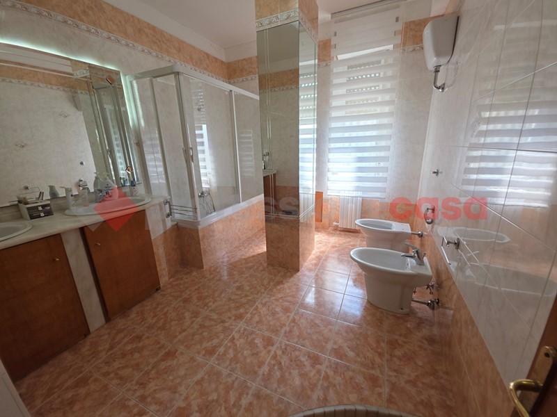 Il corridoio conduce alla zona notte che comprende tre comode camere da letto, ideali per soddisfare ogni esigenza di spazio, e una sala da bagno spaziosa e raffinata, con vasca dotata di una vetrata che la trasforma in una funzionale area doccia.