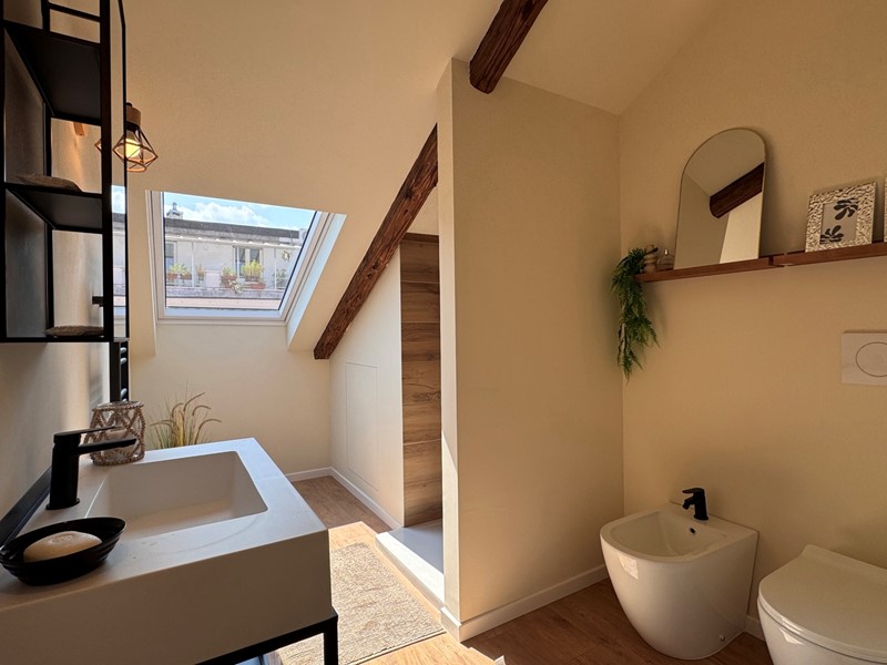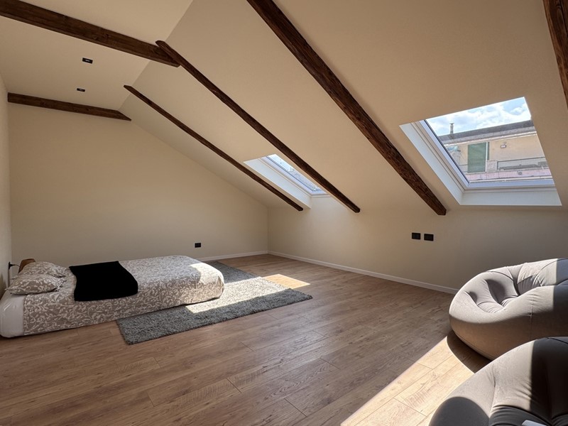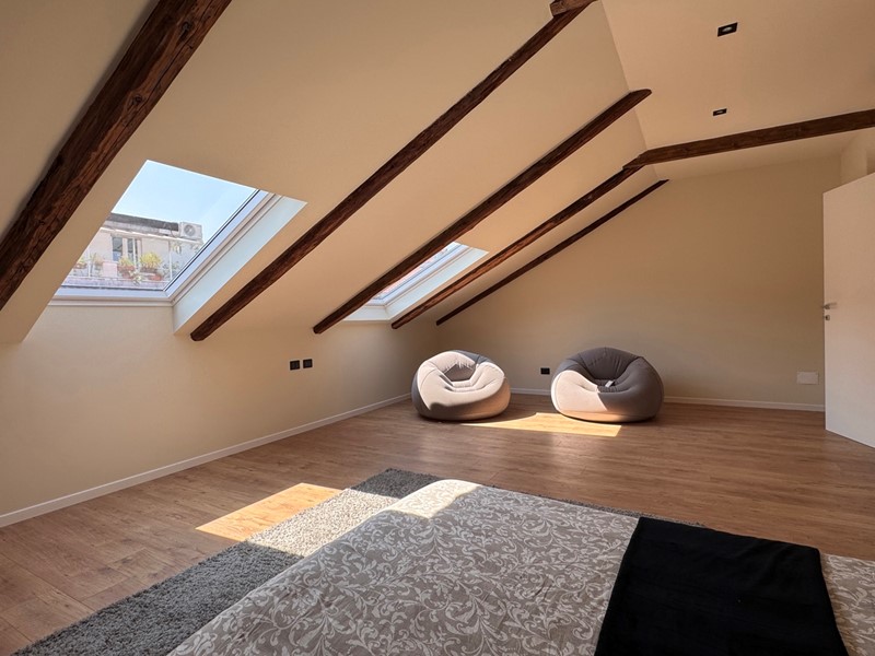In stabile signorile appena rivisto completamente nelle parti comuni appartamento di ampia metratura situato a due passi dal suggestivo fiume Dora e a 10 minuti "a piedi" dal Quadrilatero Romano. Con una superficie di 180 mq, questa proprietà è stata completamente ristrutturata con materiali di alta qualità e non è mai stata abitata. L'immobile si sviluppa su due livelli, offrendo al piano terzo un ampio ingresso padronale due camere singole una con balcone, una camera doppia con balcone e doppi servizi, mentre una scala interna conduce al piano mansardato abitabile con ulteriori 2 camere di cui una doppia e un ampia zona cucina e un bagno spazioso con 2 lavabi e 2 docce. Inoltre, vi è un locale adiacente di sottotetto grezzo di 90 mq. L'appartamento è dotato di video-citofono, è completamente raffrescato e riscaldato tramite pompa di calore, con infissi in PVC a doppio vetro e pavimenti in parquet e ceramica, ogni camera con attacchi tv.