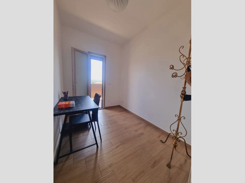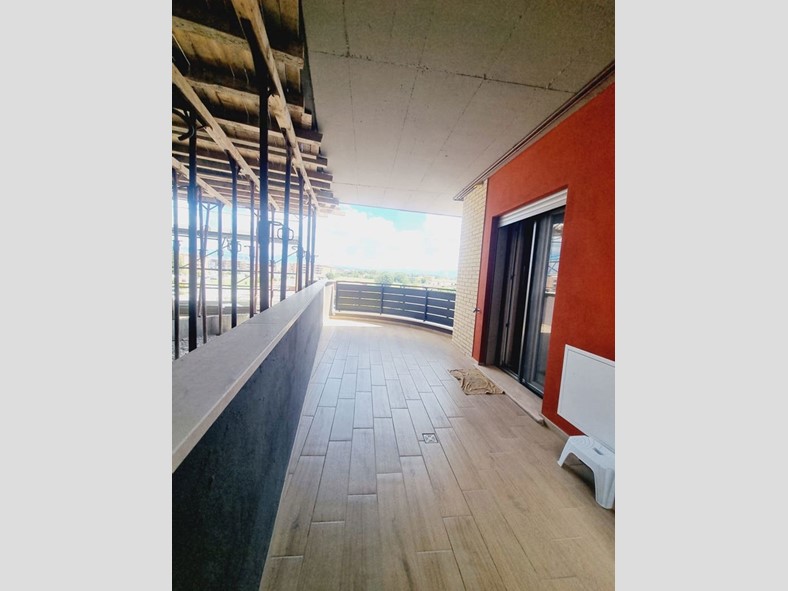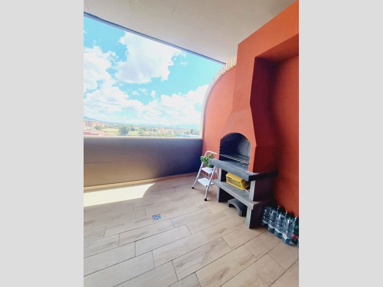 L'appartamento si compone di: Soggiorno con ampia finestra panoramica vista Castelli, Cucina separata, entrambi con accesso al terrazzo panoramico ideale per momenti all'aperto e con una deliziosa zona barbecue. Nella zona notte troviamo un Locale lavanderia, un bagno di servizio, uno Studio, due camere da letto, tra cui la matrimoniale con bagno finestrato privato e un balcone. Infissi in PVC e zanzariere incluse. TUTTO L'ARREDO è COMPRESO NEL PREZZO!!!!
