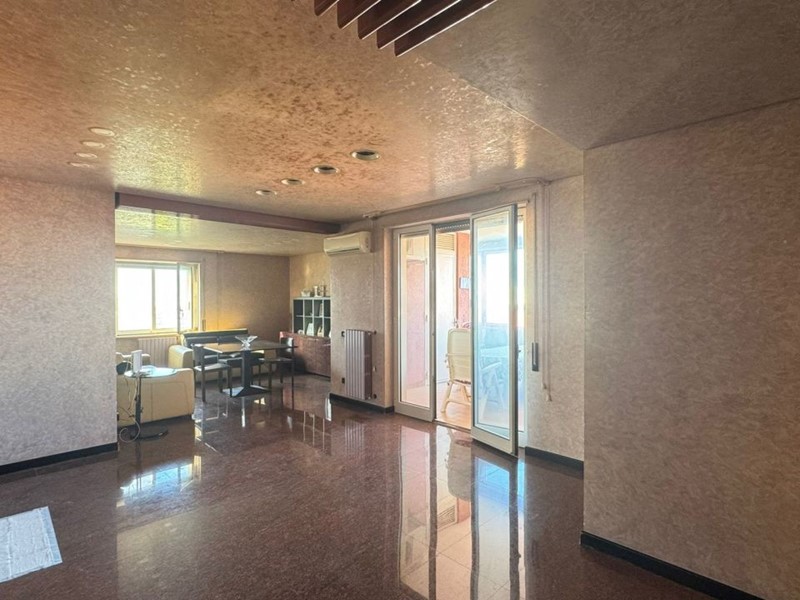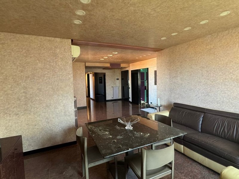 L’immobile sviluppa una superficie interna di 135 mq ed è composto da ingresso privato con cancelletto, cucina abitabile con accesso a balcone, bagno munito di antibagno e doppio soggiorno a vista con accesso ad ampia veranda coperta di 35 mq con bellissima vista mare e sulla zona storica dela città, punto forte della casa. La zona notte si compone di tre camere da letto ed ulteriore bagno.
