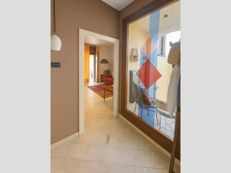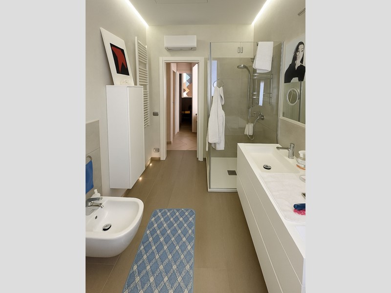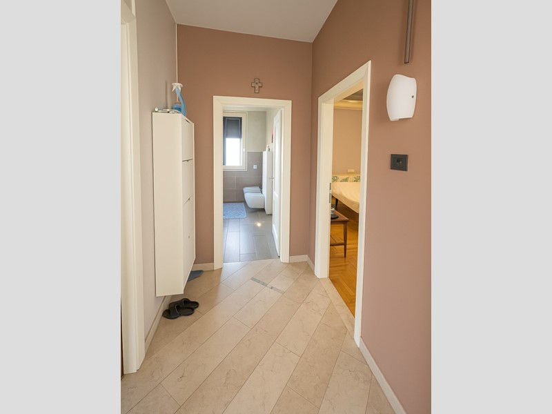 Al piano primo, raggiungibile tramite scala, appartamento di 100 mq così disposto: ampio salone open space con camino e cucina abitabile con balcone e affaccio, due camere matrimoniali, bagno con doccia ristrutturato a nuovo e terrazzo di 80 mq con lavanderia/bagno.