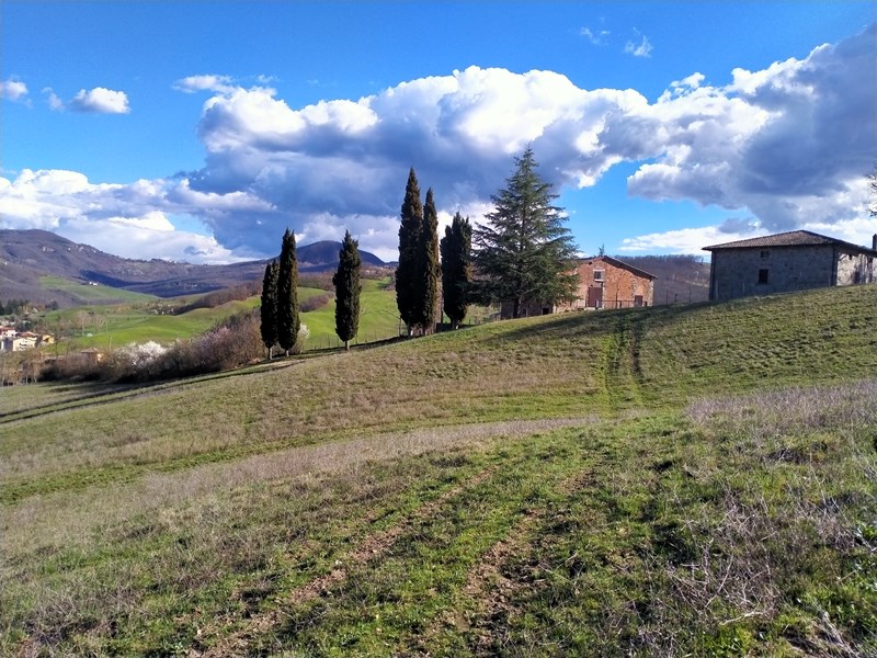 Vendo casale storico in sasso ,su 3livelli con alti soffitti a voltini,pavimenti in cotto e cementine,con stufe e camini a legna,due bagni,ringhiera scale interne in ferro battuto.situato in posizione dominante rispetto al paese,immerso nella natura e affiancato da un annesso agricolo di 400mq. Intorno ai due immobili liberi sui 4lati trovi giardino,orti ,frutteti,tutto recintato e delimitato da due cancelli e due entrate indipendenti a sud e nord.attorno a questo si sviluppa in corpo unico il resto dell azienda con campi seminativi e bosco querce per un totale di 25 ha.