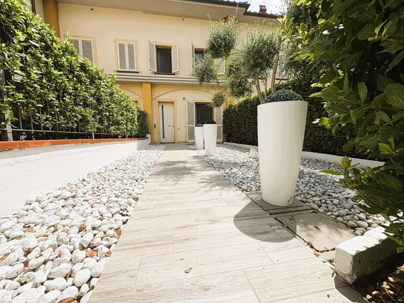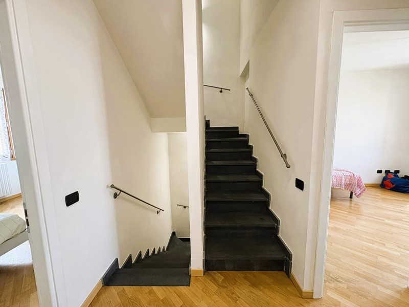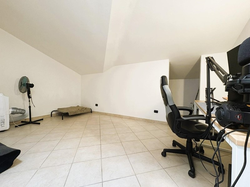 Dal giardino esclusivo si accede all'abitazione composta da soggiorno, cucina abitabile con accesso al resede mattonellato di 25 mq, antibagno e servizio igienico con box doccia e finestra; al primo piano un'ampia camera matrimoniale con doppia finestra, cameretta e altro servizio igienico con box doccia e finestra; al piano superiore mansarda praticabile dove poter realizzare un'altra camera e con predisposizione per un terzo bagno.