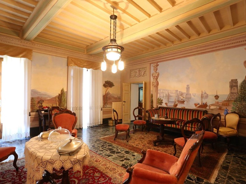 Il piano terra è composto da ampio ingresso, grande salone principale ideale per accogliere ospiti, una stanza adibita a studio, sala da pranzo, cucina e bagno. Le scale in pietra serena conducono al primo piano composto da sette grandi stanze tra cui varie camere da letto e due bagni oltra ad un balcone che si affaccia sul giardino. L'ultimo piano mansardato possiede alti soffitti con bellissime travi a vista.