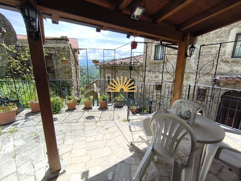 Secondo ingresso sul retro con accesso su terrazzo verandato di circa 15 mq, sempre con scala in pietra e cancelletto.