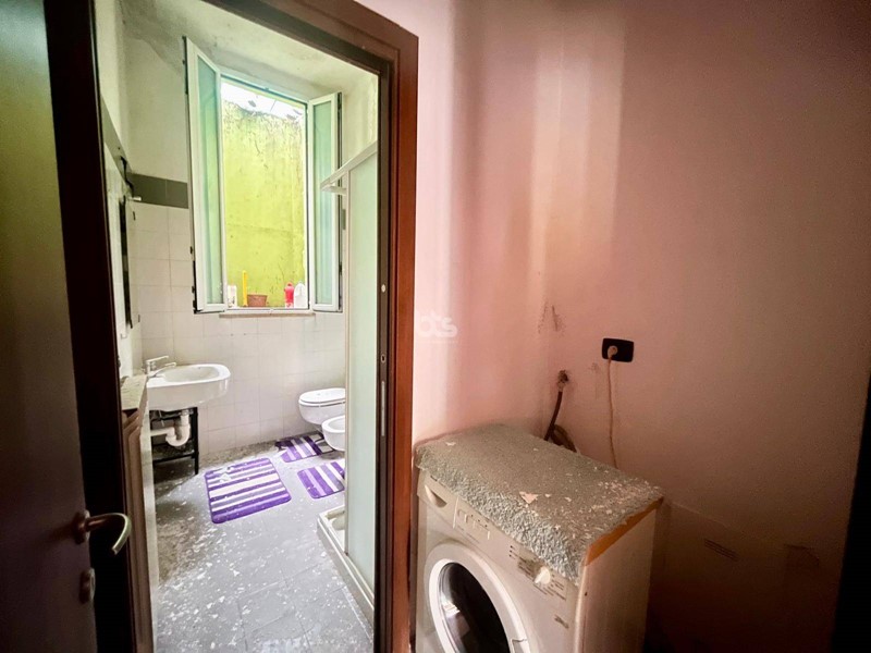 sulla sinistra troviamo un pratico disimpegno con angolo lavanderia e bagno finestrato con box doccia.