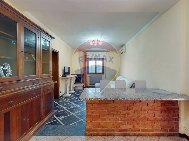 Entrando troviamo l'ampia zona giorno open space con camino, funzionalmente divisa tra zona cottura e zona living dal tavolo a penisola, capace di ospitare fino a 7 persone per momenti di convivialità con amici e famiglia; dalla zona giorno si accede sia al bagno con doccia e finestra, sia alla zona notte composta da due camere matrimoniali, una delle quali attualmente senza finestra, che si può facilmente aprire sul tetto. A corredo dell'immobile si trova una piccola resede con accesso dall'esterno, utile come angolo lavanderia e ricovero bici. L'immobile, sebbene potrebbe essere rimodernato, risulta già abitabile da subito, dotato di caldaia recente, aria condizionata ed inferriate a tutte le finestre.
