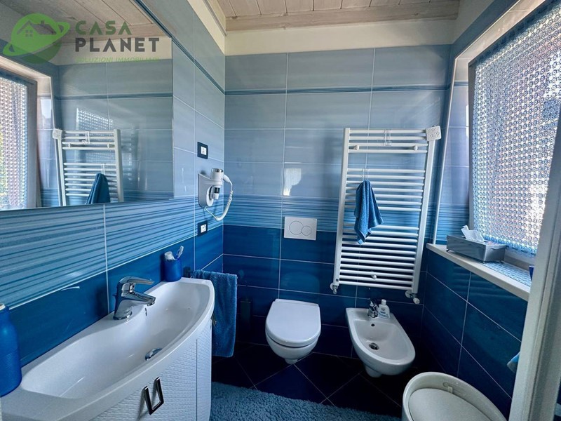 L'immobile è in ottime condizioni ed è stata completamente ristrutturata nel 2018, garantendo un elevato livello di comfort e funzionalità. L'immobile si sviluppa su una superficie totale di circa 160 metri quadrati, di cui 130 calpestabili, distribuiti su due livelli. Al piano terra si trovano l'ingresso principale, una cucina abitabile perfetta per preparare deliziosi pasti da gustare in compagnia, un ampio e luminoso soggiorno, camera matrimoniale, camera singola, un bagno e un altro ampio soggiorno completo. Al primo piano troviamo una camera matrimoniale con bagno privato e al secondo piano altra camera matrimoniale sempre con il bagno privato.