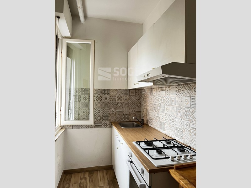 L'immobile è così composto: ingresso, disimpegno, zona giorno/sala pranzo con terrazzo, cucinotto, due camere da letto matrimoniali, bagno finestrato.
