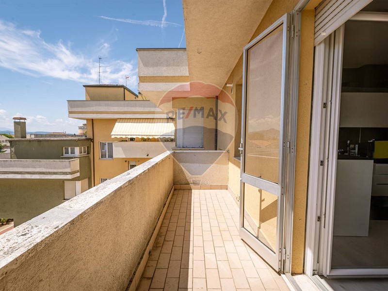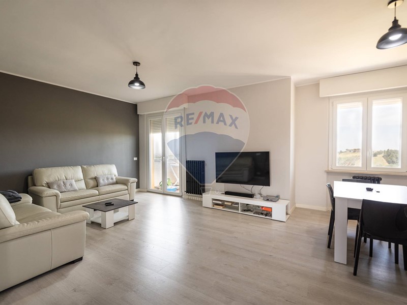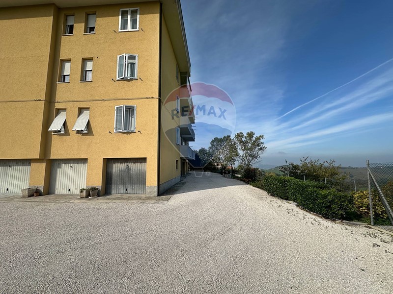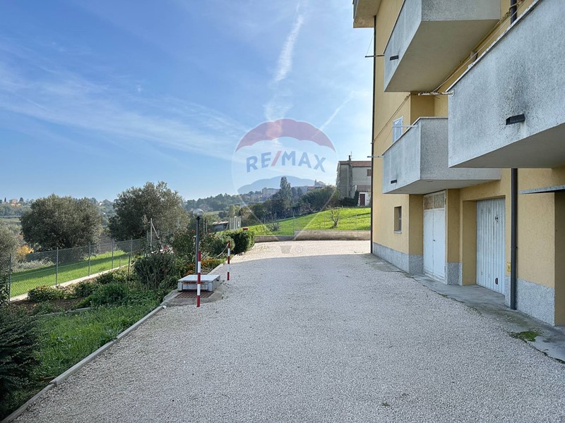 Una terrazza condominiale panoramica, da cui si può ammirare uno straordinario panorama sulle colline marchigiane fino al mare, visibile nelle giornate più limpide.