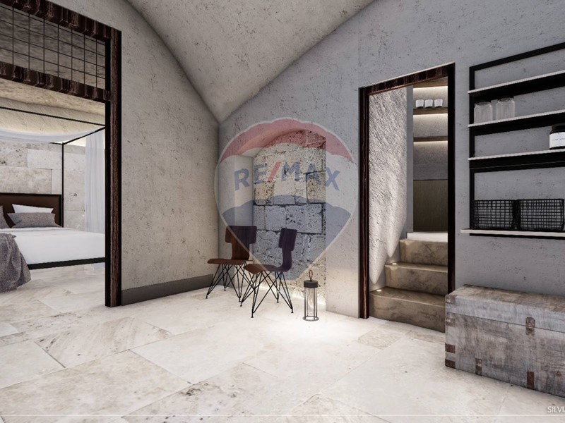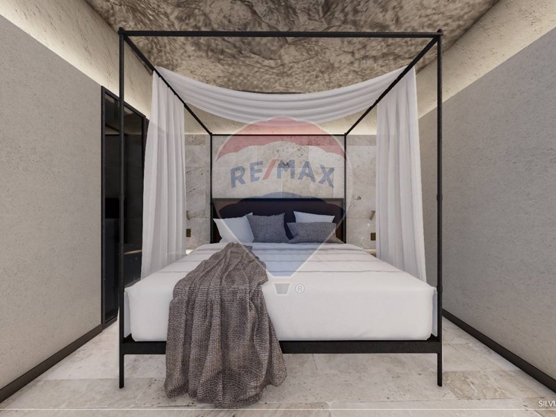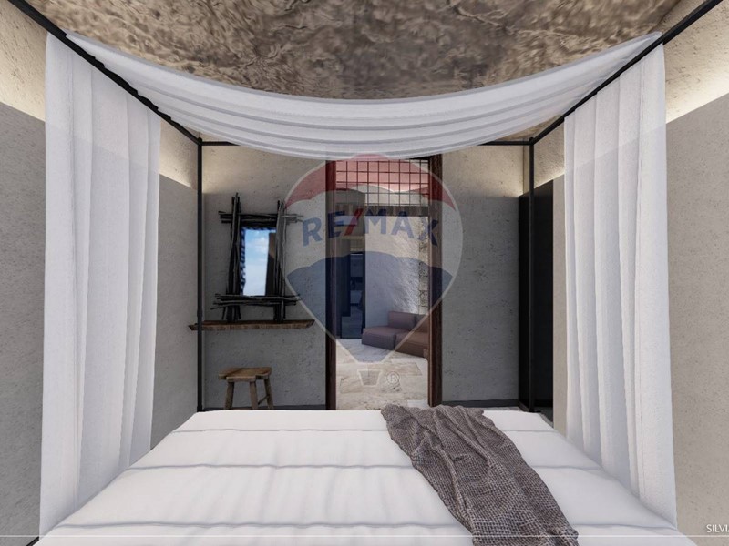 La Casa è stata ricavata da un'antica grotta dove vivevano nell'antichità intere famiglie. Il soffitto della camera da letto è interamente di roccia