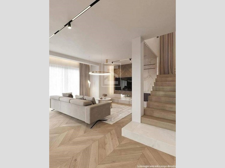 Esso è progettato su tre livelli. Il piano principale, pensato come piano nobile, ospiterà la zona giorno: un grande soggiorno con ampie vetrate che si affacciano sulle logge coperte, da cui si gode una splendida vista sul lago, ideale per momenti di relax e convivialità. A questo livello si trova anche un bagno di servizio. Al piano inferiore, leggermente rialzato rispetto al giardino, troveranno spazio tre spaziose camere da letto e un ampio bagno. Il piano interrato sarà dedicato agli spazi accessori, con una grande taverna o locale multifunzionale, un comodo bagno/lavanderia e un garage di circa 90 mq in grado di ospitare più veicoli o creare ulteriori zone di stoccaggio.