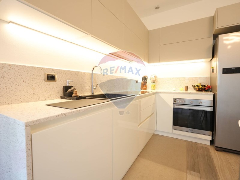 L'appartamento è dotato di comfort moderni e finiture di pregio: infissi in legno con doppi vetri, zanzariere su tutte le finestre e porte-finestre, aria condizionata in ogni ambiente e pavimenti in gres porcellanato che conferiscono un tocco di eleganza e praticità. Cappotto esterno e riscaldamento a pavimento con termostati in ogni ambiente. La caldaia è centralizzata a condensazione con sottomisuratori per i consumi dei singoli alloggi integrata con impianto a pannelli solari per la produzione dell'acqua calda.
