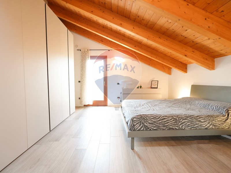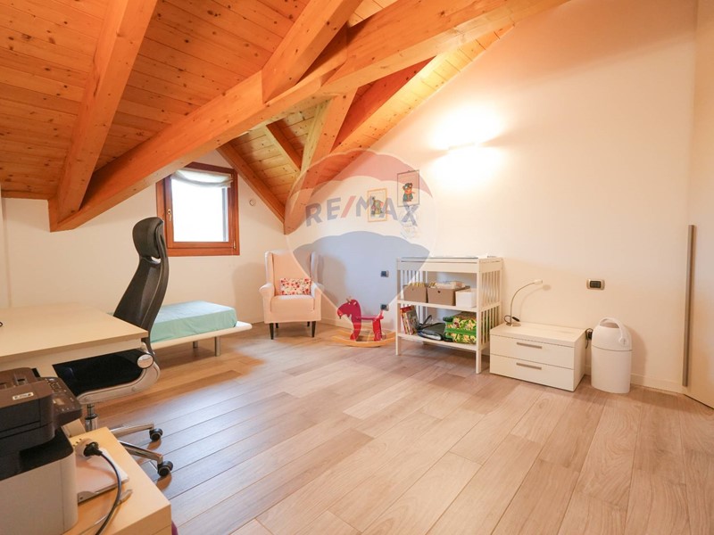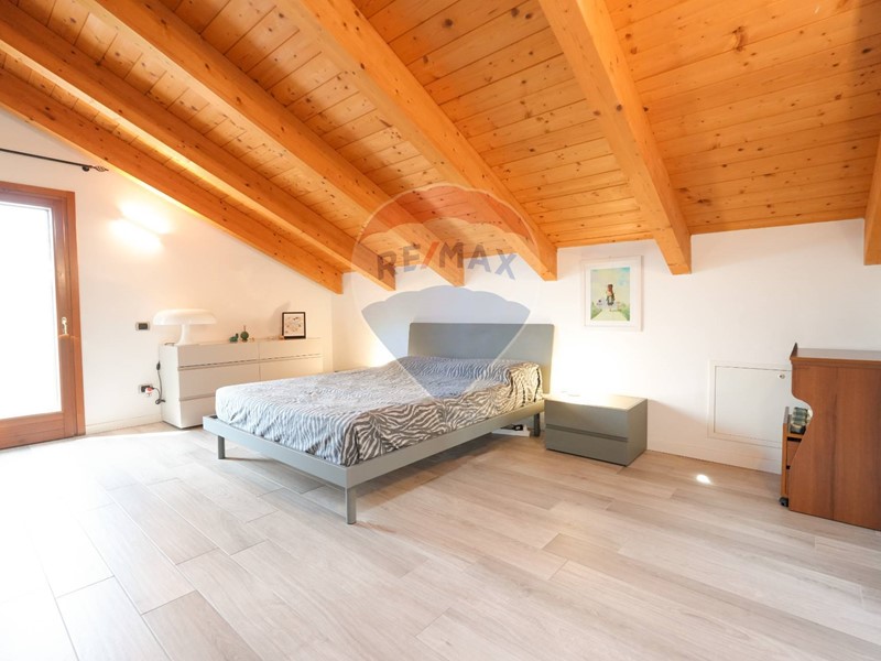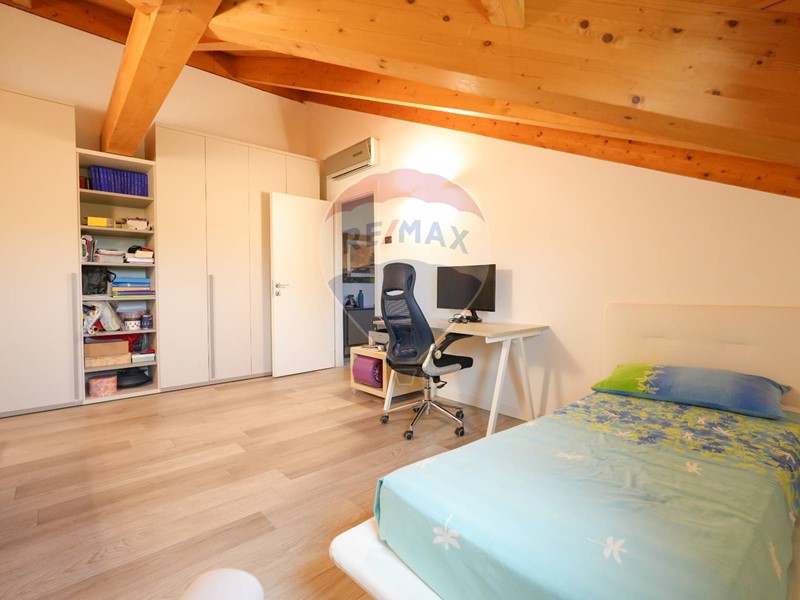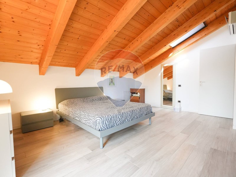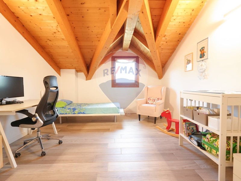 Attraverso una scala interna, si accede al piano superiore, dove si sviluppa la zona notte: qui trovano spazio due ampie camere, di cui una matrimoniale con pratico ripostiglio e secondo balcone, un grande disimpegno e un secondo bagno, anchesso finestrato.