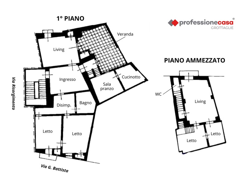 L'appartamento al piano ammezzato è collegato internamente all'appartamento principale (attualmente il collegamento è chiuso ma facilmente ripristinabile) e ospita un ulteriore trilocale. Questo spazio, accessibile anche dall'esterno, è composto da una zona giorno, due camere e un bagno, rappresentando una soluzione indipendente perfetta per ospiti, studio o eventuale locazione.
