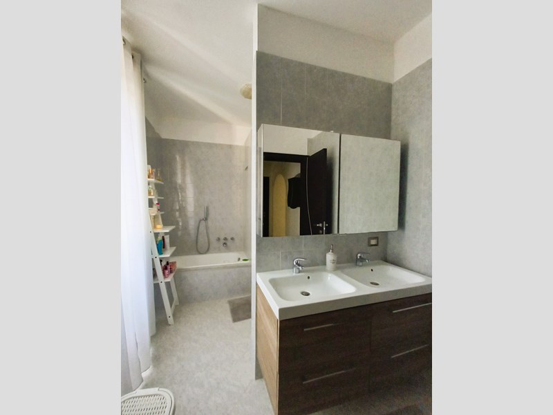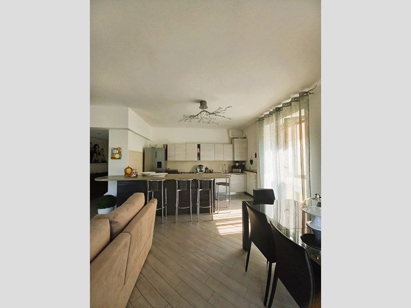 Situato al primo e ultimo piano, l'immobile è caratterizzato da una tripla esposizione che assicura ambienti luminosi e accoglienti. La disposizione degli spazi è ideale: un ingresso che conduce a un ampio salone, una zona living e una zona pranzo, oltre a una cucina a vista perfetta per gli amanti della cucina. La camera matrimoniale è dotata di una cabina armadio, mentre la seconda camera offre spazio sufficiente per ospiti o un ufficio. Il bagno è elegante e funzionale, con doccia e vasca.