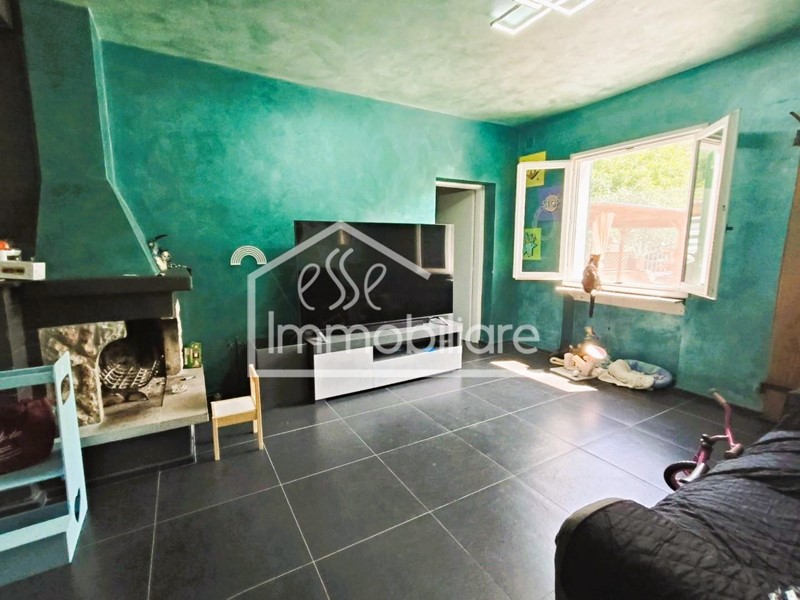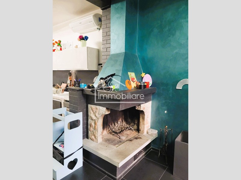 L'abitazione è composta da soggiorno con cucina e camino, due camere da letto matrimoniali, servizio igienico con box doccia e finestra e ripostiglio.