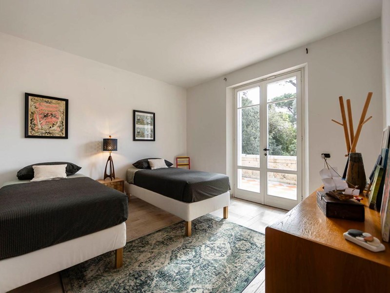 Altra suite composta da due camere da letto condivide un bagno privato; entrambe le stanze dispongono di porte-finestre che si affacciano su terrazze indipendenti, perfette per momenti di quiete all’aria aperta.