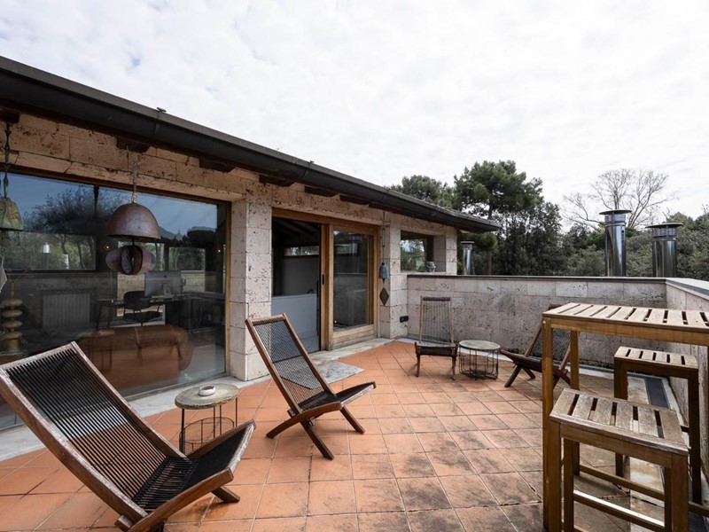 Tre grandi terrazze a livello collegano in modo fluido gli interni al rigoglioso giardino, offrendo zone soleggiate e ombreggiate per pranzi all’aperto, colazioni o momenti di relax serali, in ogni stagione.