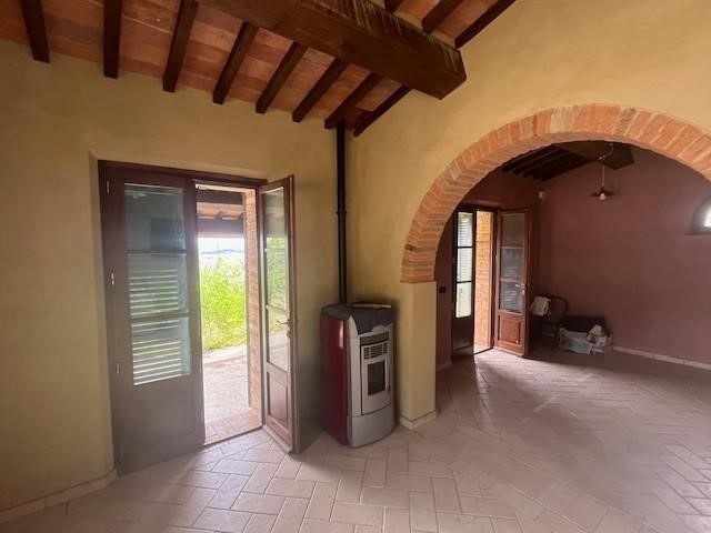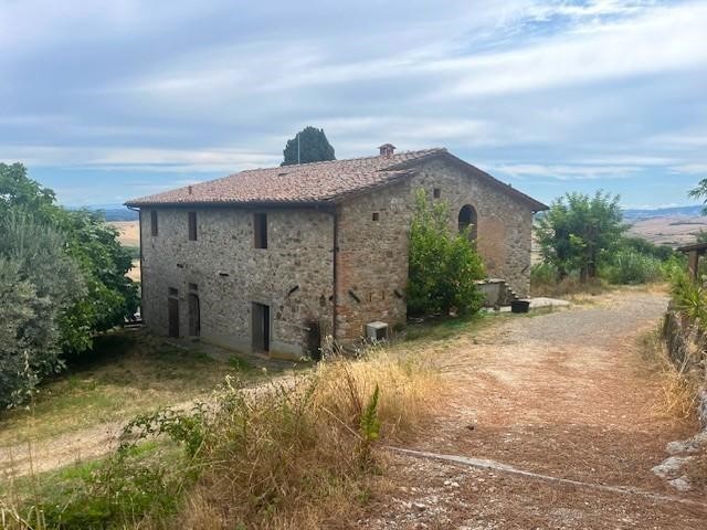 Nella splendida cornice di paesaggio collinare di Chianni, in posizione riservata ma vicino al paese, proprietà immobiliare composta da casale in stile rustico toscano di mq. 410 posto su due livelli con bellissima terrazza panoramica, annesso di mq. 50 con tettoia di mq. 20, ricovero attrezzi di mq. 50 e terreno agricolo di 6 ettari coltivato ad uliveto e una piccola parte a bosco. Il casale è stato ristrutturato esternamente, mentre internamente è al grezzo e quindi consente la personalizzazione a proprio gusto. Al piano primo troviamo ampia zona giorno composta da cucina, pranzo e soggiorno, disimpegno, bagno e altri 5 vani che possono essere destinati sia a camera che studio con possibilità di creare anche altro bagno. Al piano terra invece troviamo quattro locali cantina e due locali di sgombero. E' possibile convertire i locali del piano terra in vani abitativi. L'annesso può essere trasformato in civile abitazione in modo da creare una dependance. La proprietà attualmente è ad uso agricolo, eventualmente da deruralizzare se acquisito non come azienda agricola. Attualmente con la coltivazione ad uliveto viene prodotto olio biologico. Questa bellissima proprietà rappresenta un'opportunità unica per chi cerca una residenza di prestigio nel cuore della Toscana, ideale sia come abitazione principale anche per più famiglie sia come azienda agricola e/o struttura turistico ricettiva.