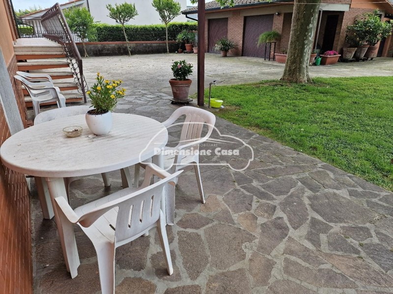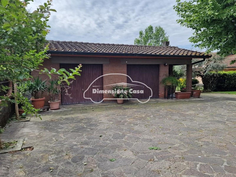E' corredata da ampia soffitta, da stanza lavanderia, da mq. 50 circa tra due garage carrabili e ripostigli, oltre a circa 1.000 mq. di giardino con comoda area parcheggio, il tutto recintato e accessibile mediante cancello carrabile automatico e cancellino pedonale.
