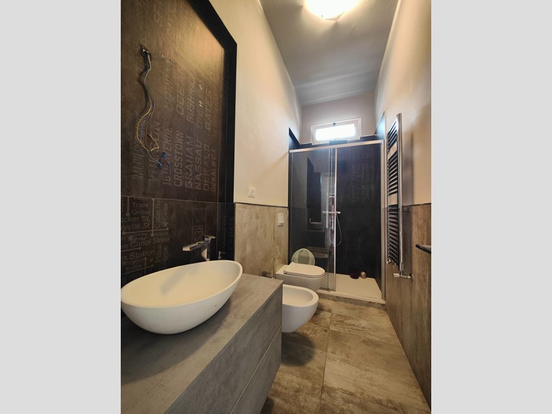 Completamente ristrutturato e con tetto coibentato. Dispone di ingresso indipendente, accesso al piano primo attraverso una scala interna , disimpegno con ampia apertura collegato alla cucina abitabile, una camera da letto matrimoniale con bagno e doccia , una cameretta e un secondo bagno con doccia entrambe finestrati. Attraverso una corte al piano terra esternamente si accede al garage di mq 25, attualmente adibito a rustico e lavanderia.