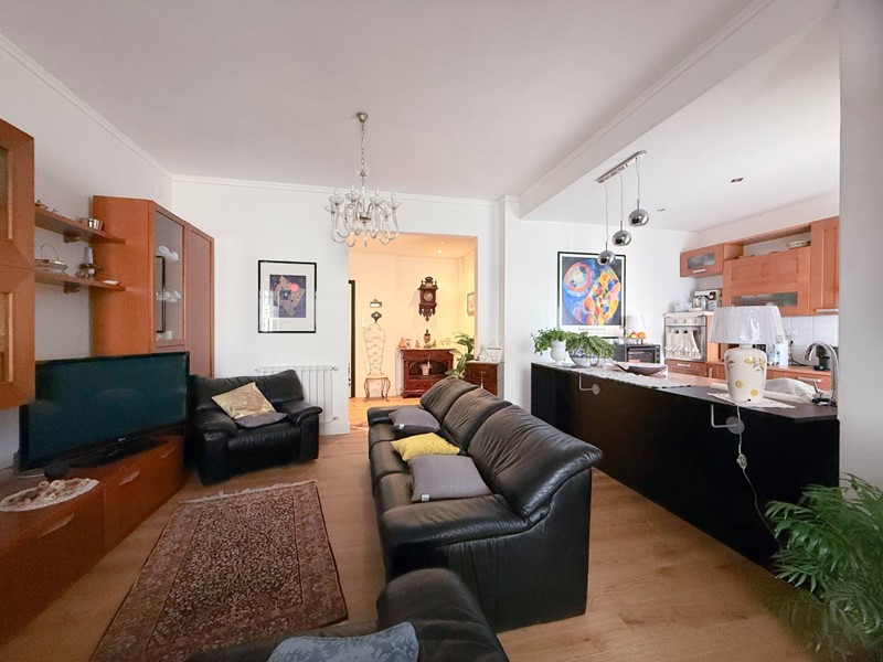 I metri quadrati sono 115, molto ben distribuiti, l'ingresso si apre sull'ampia zona giorno composta dal soggiorno e dalla cucina.