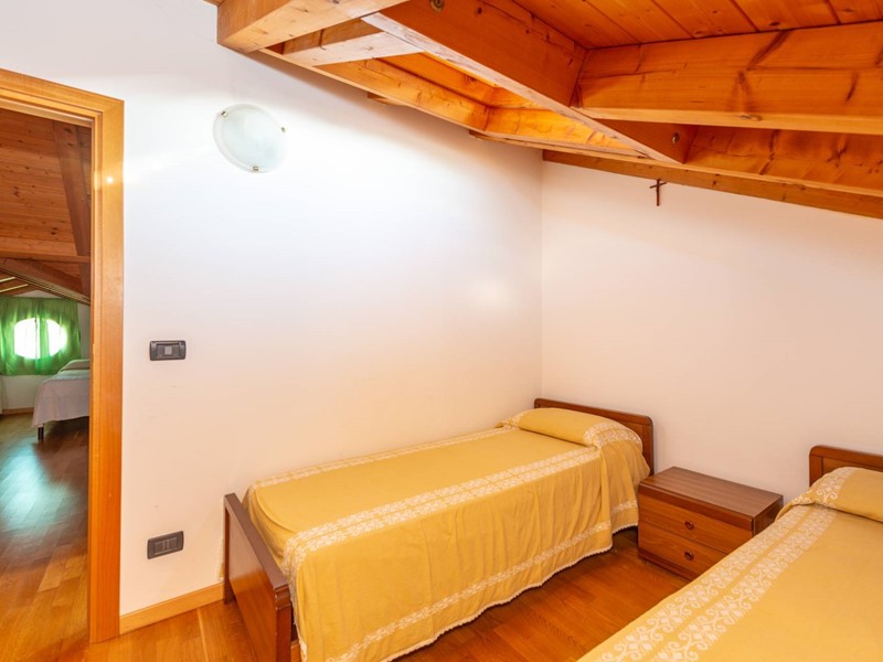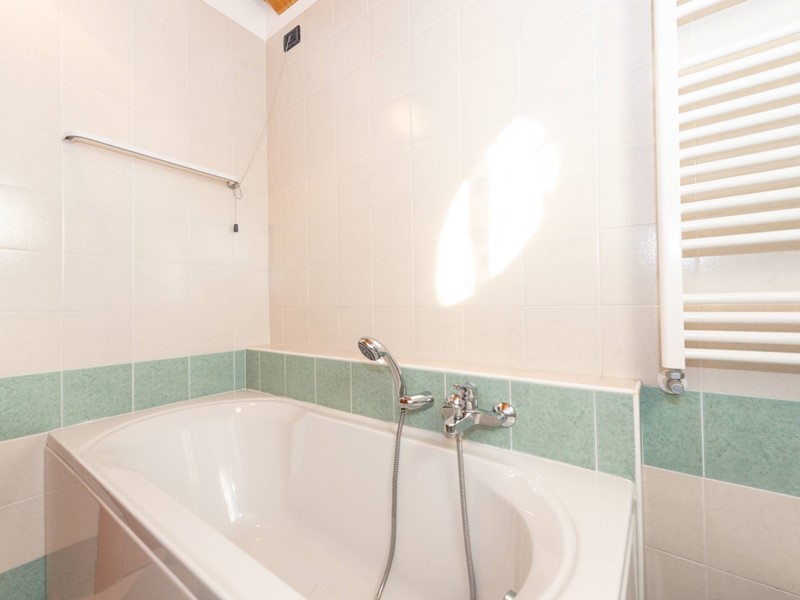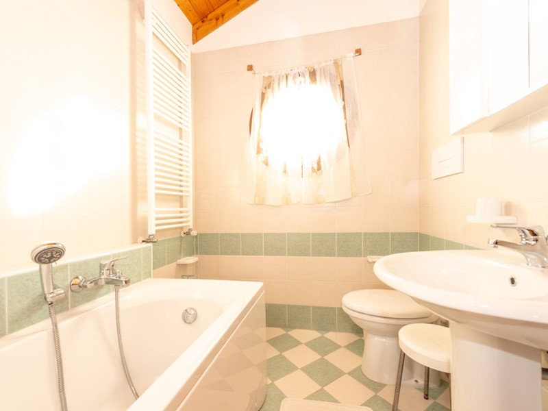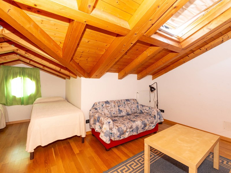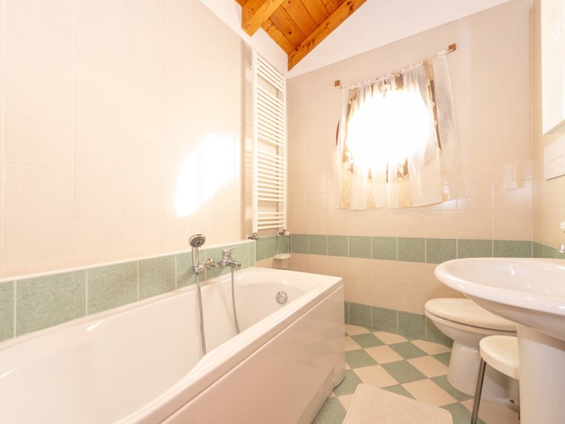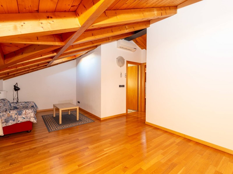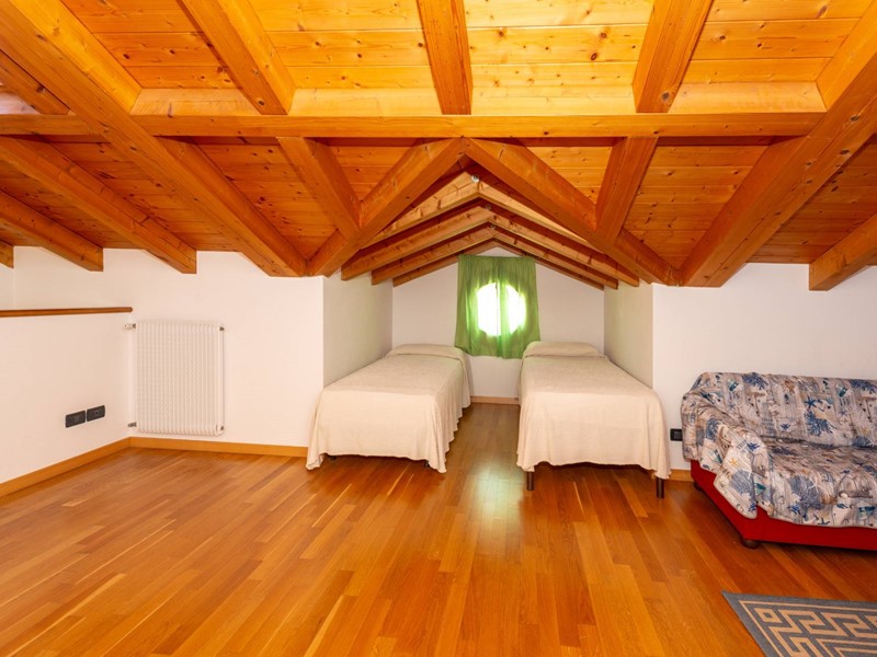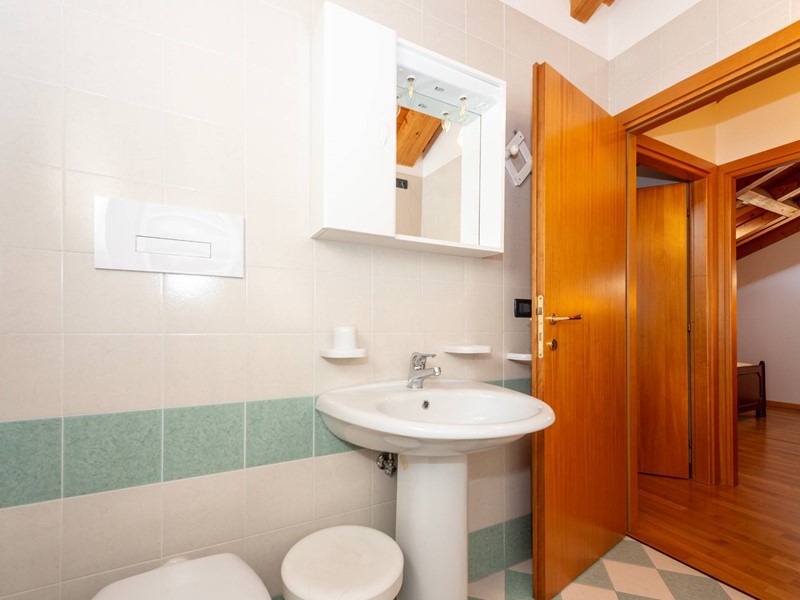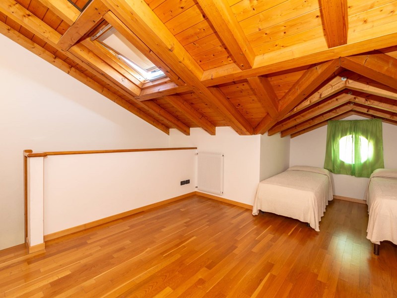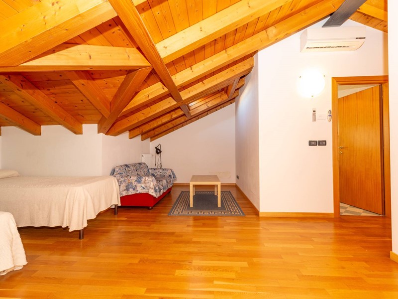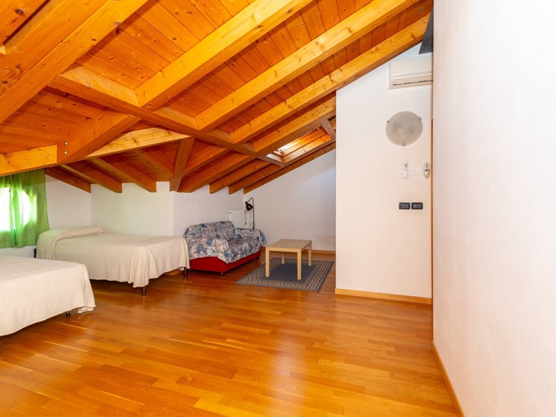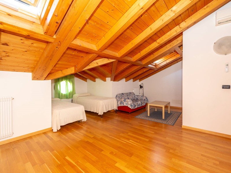 Una delle caratteristiche che rende questa proposta davvero esclusiva è il sottotetto, collegato da una elegante scala interna in legno. Lo spazio, interamente rifinito con travi a vista e pavimento in parquet, ospita tre ambienti distinti utilizzabili come ulteriori camere, studio o zona relax, oltre a un secondo bagno finestrato con vasca, che dona praticità e charme al piano superiore.