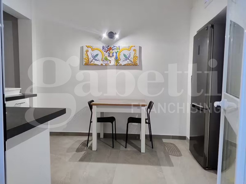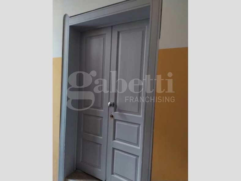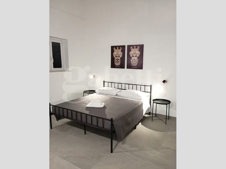 La casa ha ingresso su vano con locale lavanderia (ingresso esterno), soggiorno con ingresso interno (androne del condominio), bagno con doccia, cucina con accesso al cortile, terzo bagno con finestra, camera da letto matrimoniale con finestra e accesso al cortile.