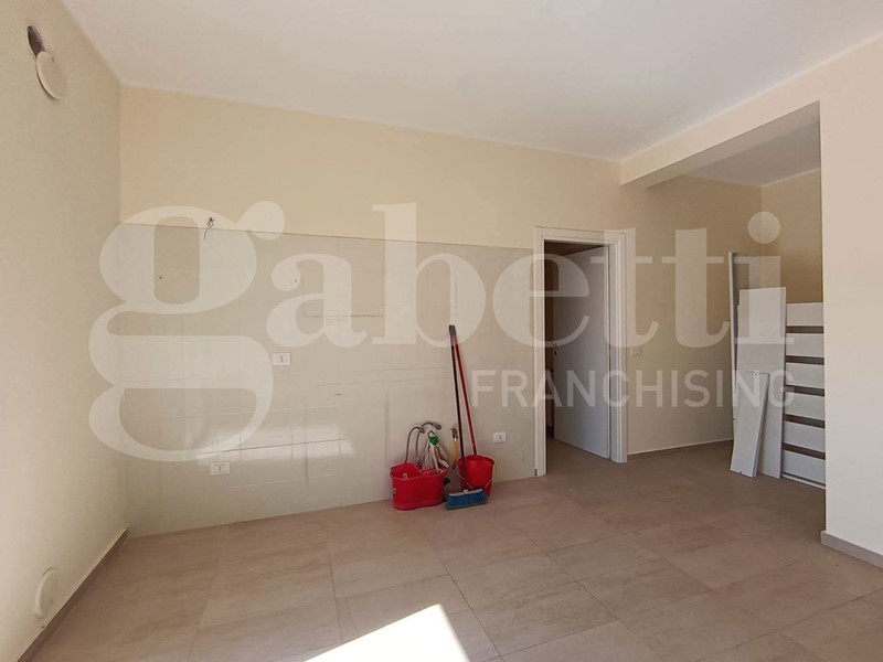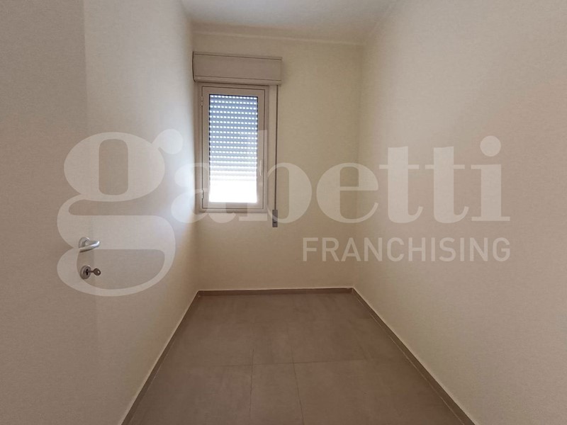 l'immobile ha ingresso sulla cucina soggiorno con accesso al balcone unico (che collega tutte le stanze), camera da letto con accesso al balcone, bagno con doccia e finestra, ripostiglio con finestra (solitamente adibito a cabina armadio a a camerino).
