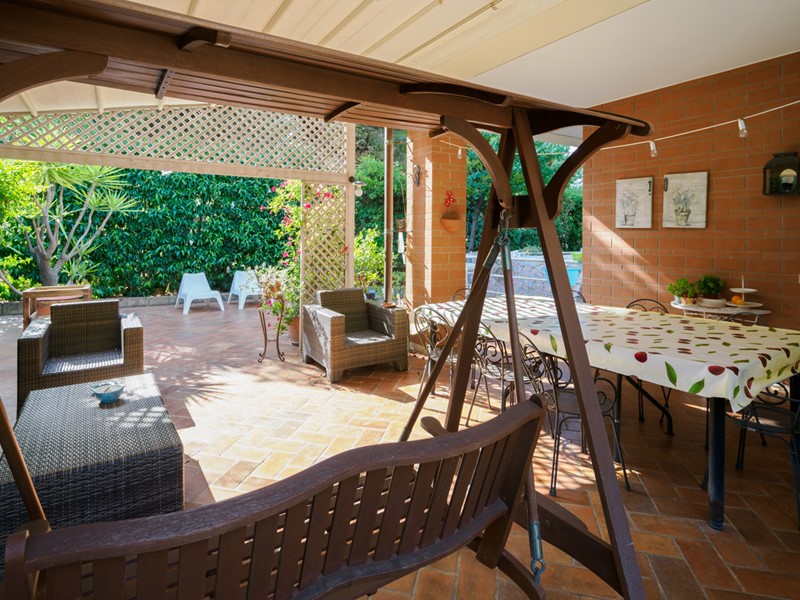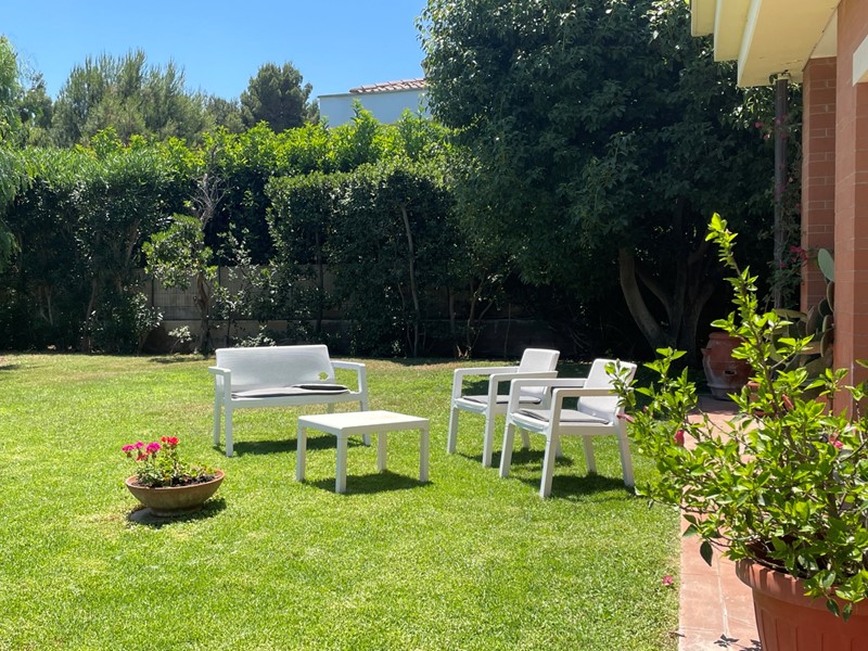 La villa unifamiliare, posta in Via dei Gelsomini, ha un taglio elegante e fa parte delle costruzioni di tipologia top class. E' posizionata su una piccola altura naturale ed il verde rigoglioso, che la circonda su quattro lati, garantisce privacy e tranquillità. La distribuzione degli ambienti interni è armonica e funzionale ed ha grandi vetrate affacciate sul giardino piantumato e ampi e comodi patii.