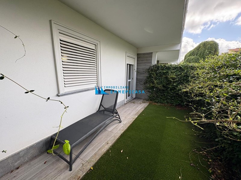 Cinquale, a circa 1.800 metri dal mare (oltre l'autostrada), in elegante palazzina quadrifamiliare di recente costruzione, si vende grazioso appartamento posto al piano terra e pari al nuovo. Internamente composto da: ingresso, soggiorno/pranzo con angolo cottura e accesso diretto a bellissima veranda coperta per pranzi e cene all'aperto, disimpegno, una camera matrimoniale con accesso a giardinetto tergale, una camera doppia e un bagno con doccia. Giardino esclusivo e vano tecnico/lavanderia. Climatizzato e dotato di impianto allarme. Due posti auto di proprietà in area condominiale. Vanta una classe energetica A1, garantendo efficienza e risparmio.