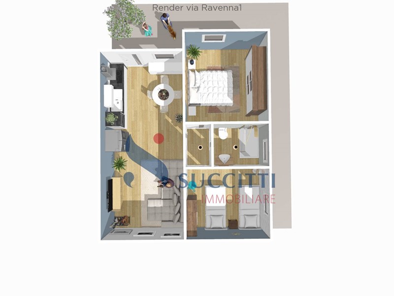 Importante: L'immobile è in fase di ristrutturazione. Il render illustrativo mostra un'idea progettuale dove il ripostiglio viene eliminato per creare un living ancora più spazioso e accogliente.