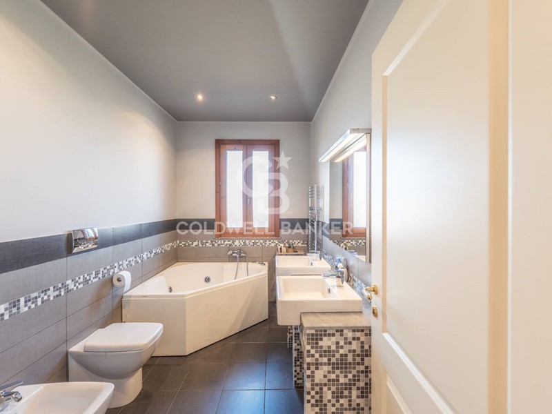 Le due confortevoli camere da letto e i due servizi di cui uno con vasca idromassaggio completano gli spazi al primo piano.