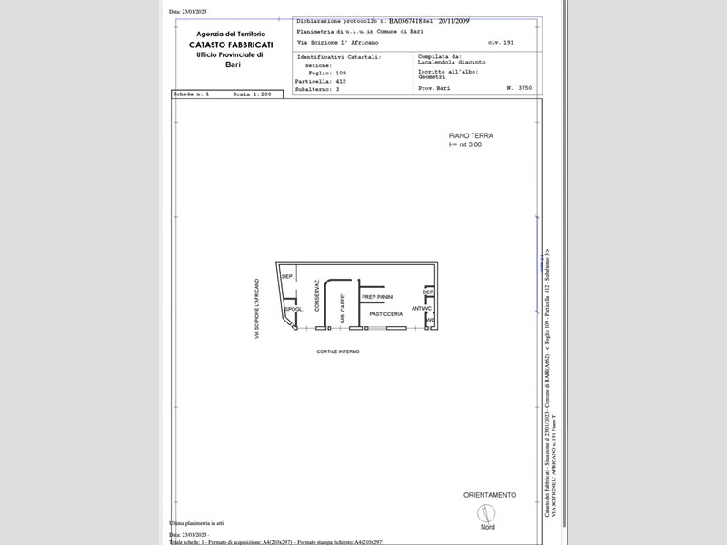 A BARI ZONA PICONE VIA SCIPIONE L’AFRICANO 191, A RIDOSSO DEL RESIDENCE “BORGO DEGLI ULIVI” . AMPIO INDIPENDENTE LOCALE, COMMERCIALE NEL CUORE DEL QUARTIERE, A POCHI PASSI DAL POLICLINICO. IN CORTILE CONDOMINIALE, CON ACCESSO DA CANCELLO CARRAIO E PEDONALE ELETTRIFICATO. SITUATO IN UNA POSIZIONE PRIVILEGIATA. QUESTO LOCALE RAPPRESENTA UN'OPPORTUNITÀ UNICA PER CHI DESIDERA FARE UN INVESTIMENTO SICURO IN UN OTTIMO CONTESTO. IL LOCALE HA QUATTRO SERRANDE CON AREA DI SGOMBRO RISERVATA A PROSPETTO, COME DA PIANTINA CATASTALE, TUTTE LE PARETI RIVESTITE CON PIASTRELLATURA FINO AD TEZZA DI 2 MT. POSTO AUTO RISERVATO. L’ATTUALE DESTINAZIONE CATASTALE È C3 “ LABORATORI E ATTIVITÀ A CARATTERE ARTIGIANALE” E RISULTA ATTRATTIVO ED ADATTO A SVARIATE ATTIVITÀ E POSSIBILI FRAZIONAMENTI E CAMBIO D'USO. IL PREZZO RICHIESTO è TRATTABILI, NON AGENZIE ED INTERMEDIARI . ATTUALMENTE LIBERO DA SUBITO,