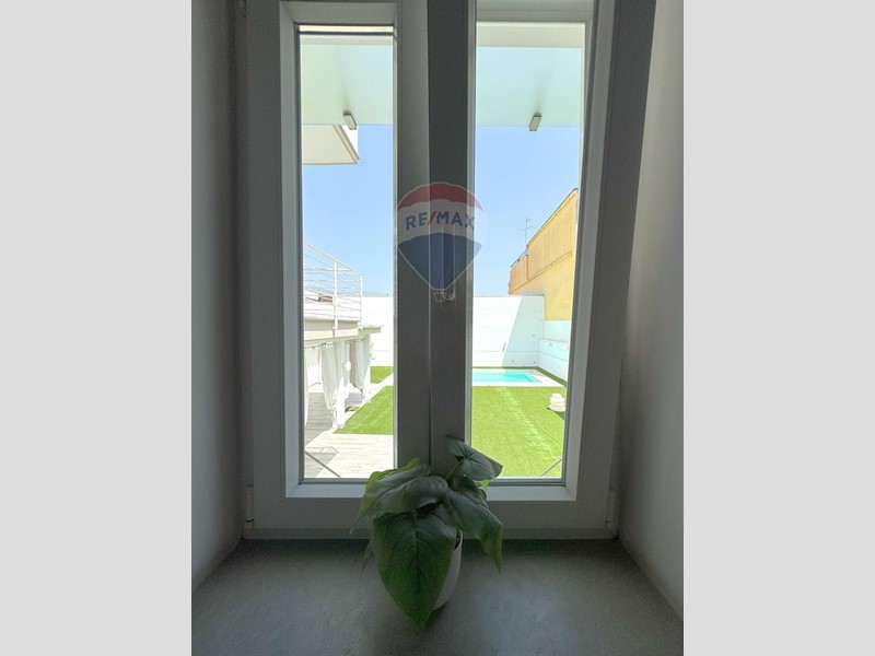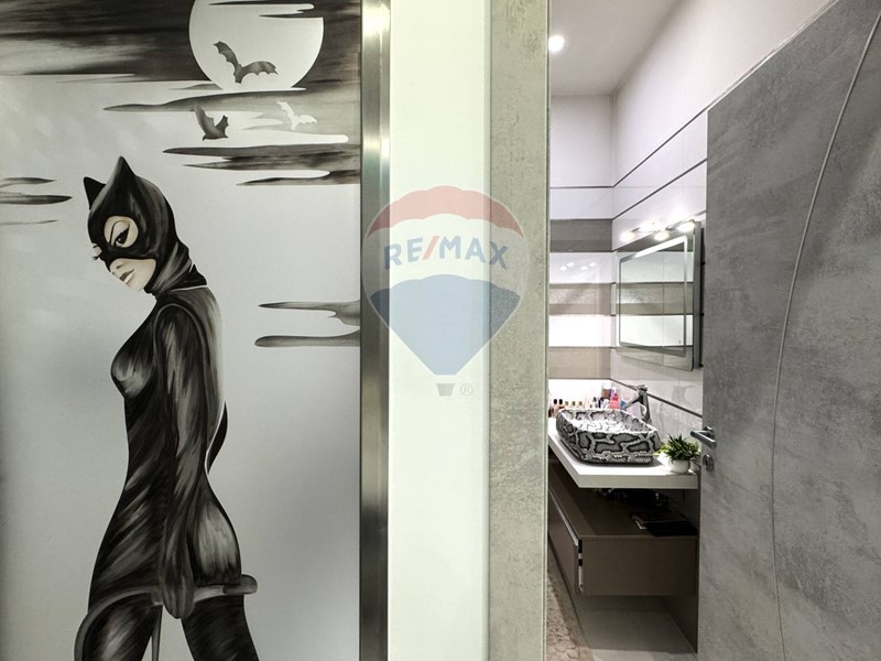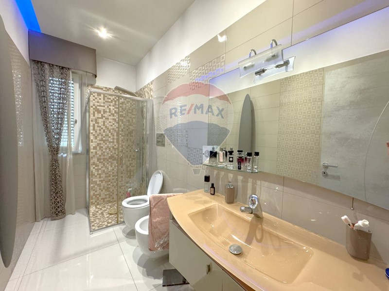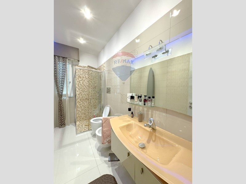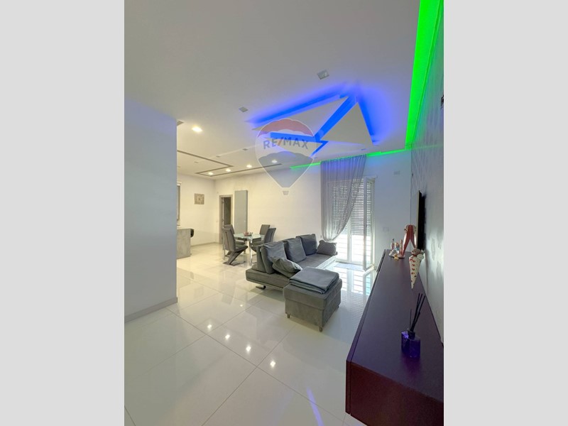 - il secondo, di 127 mq ca., così composto: ingresso in ampio salone-living, con cucina annessa e spaziosi balconi, lavanderia, camera da letto matrimoniale con bagno interno e cabina armadio, seconda camera da letto ed ulteriore bagno. L'appartamento è altamente rifinito, con dettagli di prestigio, impianto elettrico, domotica, riscaldamento autonomo a pavimento, che garantisce un' ottima distribuzione di calore in tutti gli ambienti, infissi a taglio termico con doppio vetro camera.