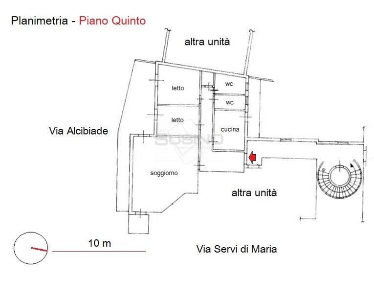 L'appartamento, posto al quinto ed ultimo piano, al suo interno presenta un comodo ingresso che si apre sull'ampio ed articolato salone. A seguire, un disimpegno serve gli altri ambienti: cucina abitabile, 2 camere, bagno, doppio servizio/lavanderia e ripostiglio.