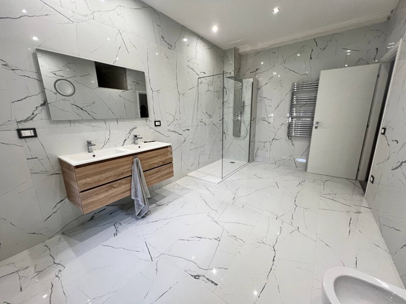 L'appartamento al suo interno è stato appena ristrutturato totalmente, e presenta la seguente distribuzione: l'ingresso si apre direttamente su un ampio salone con cucina open space, accedendo alla zona notte un disimpegno serve tre comode camere da letto, due ampi servizi ed una lavanderia.