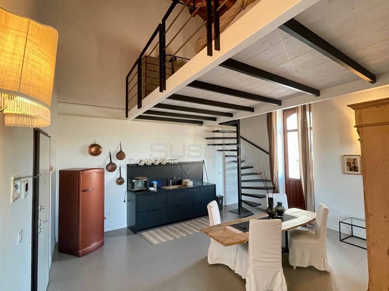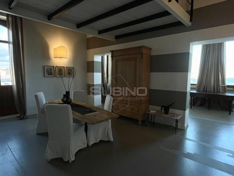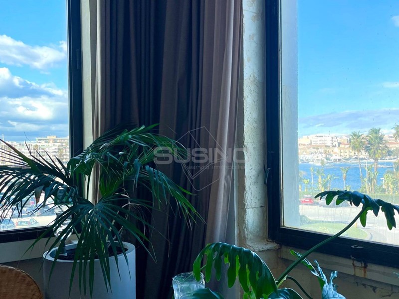 Riva Nazario Sauro, a conclusione del Lungomare di Levante nella luminosa isola di Ortigia, all'interno di un palazzo finemente ristrutturato, dove i caratteri storici si fondono con l'ottima panoramicità che restituisce la posizione, proponiamo elegante appartamento stile loft.