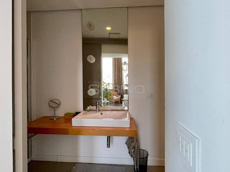 All'interno, un ampio open space ospita la zona giorno che si distingue in: soggiorno-pranzo con cucina a vista e area conversazione valorizzata dall'ampia finestratura angolare con splendida vista. Completa la superficie il bagno con ampia doccia.