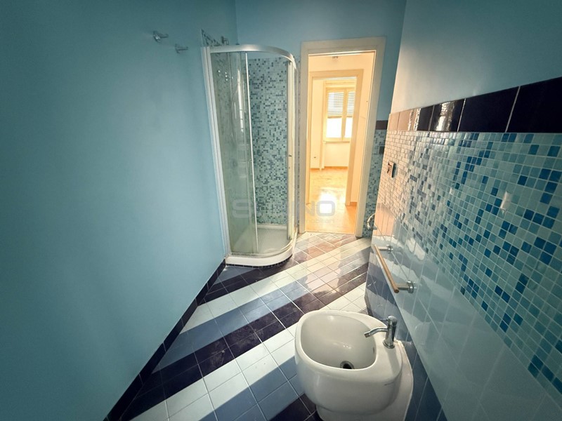 L'appartamento, posto al piano primo, conta quattro vani ed è così distribuito: ingresso, soggiorno, tre vani letto, cucina abitabile, bagno e doppio servizio.