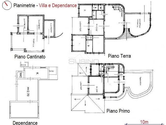 La villa principale si articola su 2 livelli oltre il piano cantinato e presenta: